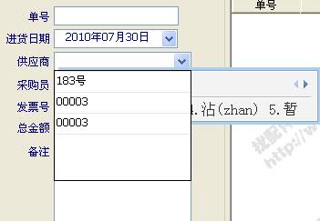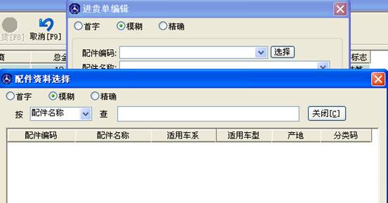 6、 配件太多記不住配件編號怎么辦?輸入編號、配件名稱等等會很麻煩,那么多編號肯定是記不住的,先填好供應商、采購員、發(fā)票號等等,之后就是開新單會彈出: