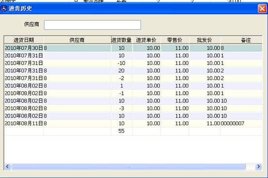 ,選擇需要查詢的配件點擊進貨歷史,該配件之前的所有的進貨記錄都會顯示出來,
