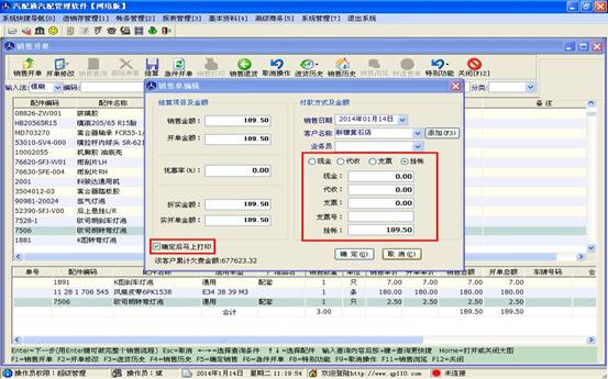 當(dāng)客戶所要購買的配件都添加到下方的表格后,點(diǎn)擊上方的結(jié)算按鈕,進(jìn)入結(jié)算操作
