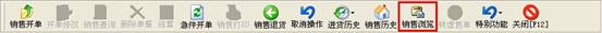 點(diǎn)擊“銷售開單”上面的“銷售瀏覽”按鈕可對(duì)以往的銷售單據(jù)進(jìn)行查看